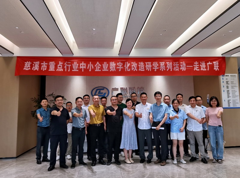 2024年7月11日,慈溪市广联汽车配件有限公司员工怀着激动的心情,热烈欢迎慈溪市经信局领导及各企业代表、专家走进公司,共同参访并联合举办数字化改造研学系列活动。通过实地研学,探索中小企业数字化转型的成功路径,为更多企业提供参考和借鉴。