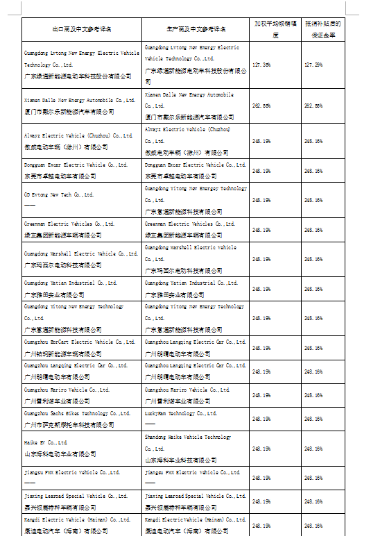 2025年1月24日,美国商务部宣布对进口自中国的低速载人车辆(Low-Speed PersonalTransportation Vehicles)作出反倾销初裁,初步裁定中国生产商/出口商的加权平均倾销幅度为127.35%-478.09%(抵消补贴后的保证金调整为127.29%-478.09%,具体税率详见下表)。美国商务部预计将于2025年6月16日对进口自中国的涉案产品作出反倾销终裁。本案涉及美国海关编码8703.10.5030项下产品。