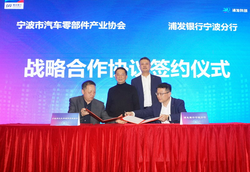 在浦发银行宁波分行党委委员刘斌和协会会长吴志光的见证下,浦发银行宁波分行科技金融部总经理朱晓哲与协会秘书长汪虹签约了战略合作协议。