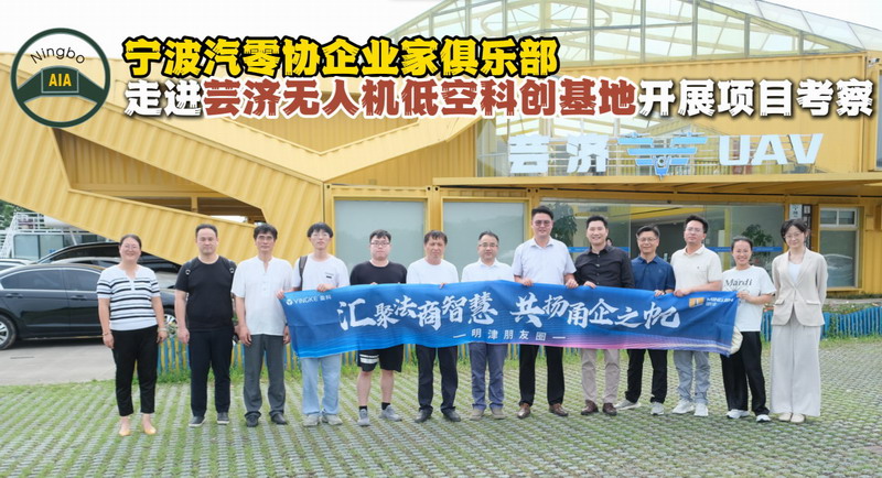 7 月 17 日,宁波市汽车零部件产业协会企业家俱乐部,组织恒力液压、新之华、德普隆、新众润等近20位制造业企业代表,与协会法律、金融等领域专家,赴宁波芸济无人机科技有限公司进行项目考察。