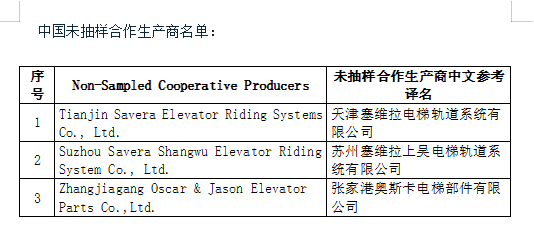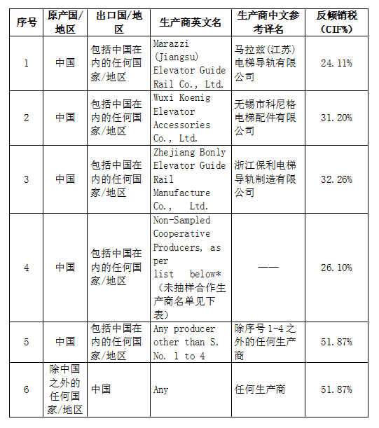 附表:印度对华升降机导轨反倾销终裁建议征税表